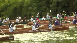 We picked up the action in the village of Boom, where the pace was aggressive from the opening whistle. From the outset, the leading pack stayed tight, with crews jostling for position as they powered downstream. The race remained neck-and-neck heading toward Haulover Creek, where strategy began to play a decisive role. It was through the narrow stretch just after the Haulover Bridge that the real separation occurred. The tighter channel forced paddlers to choose their lines carefully and that’s where experience paid off.