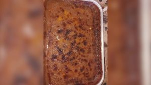 Cassava pudding or plastic cake, as many Belizeans know it, is a traditional dessert made from grated cassava, coconut milk, sugar, and spices, baked into a dense, sticky, and flavorful treat. It’s just one of the many recipes Valencio learned growing up in her family’s kitchen.